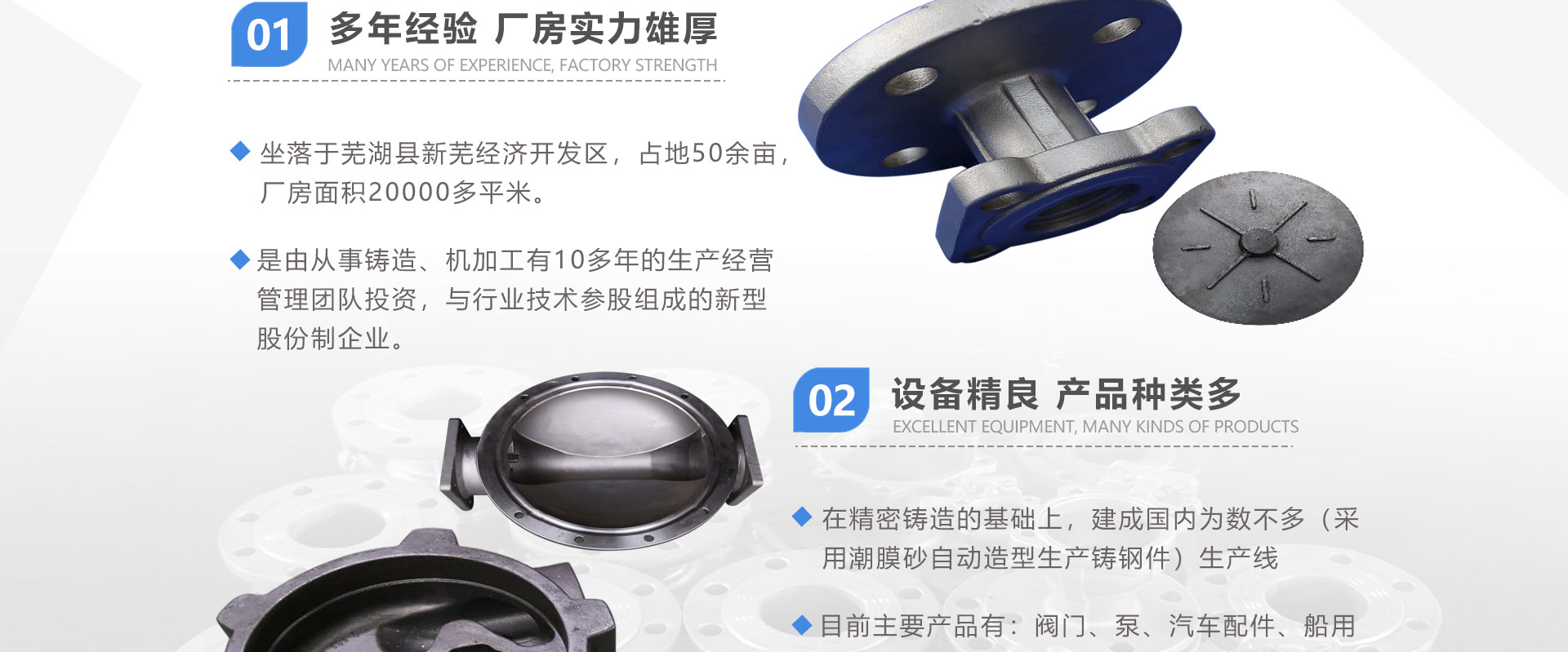 安徽偉工機(jī)械科技有限公司,坐落于安徽蕪湖新蕪經(jīng)濟(jì)開(kāi)發(fā)區(qū),是一家専業(yè)從事鑄造產(chǎn)品設(shè)計(jì)、研發(fā)、生產(chǎn)、銷售于一體的企業(yè),公司為客戶的產(chǎn)品提供多樣的技術(shù)支持與設(shè)計(jì),公司主要鑄造技術(shù)有潮模砂鑄造、硅溶膠精鑄工藝。主要產(chǎn)品有:不銹鋼閥門(mén)配件、泵閥配件、汽車配件、工業(yè)管道配件、工程機(jī)械配件、汽車配件等。材質(zhì)為:低合金鋼、304、316、316L、鉻鉬鋼、哈氏合金、碳鋼、雙相鋼等。公司已先后通過(guò)ISO9001和TS16949等多種體系審核,以完備的管理手段和齊全的檢測(cè)設(shè)備滿足客戶需求,進(jìn)的設(shè)備,専業(yè)的技術(shù),嚴(yán)謹(jǐn)?shù)墓芾恚€(wěn)定的質(zhì)量。服務(wù)客戶,鑄造未來(lái),偉工誠(chéng)摯的歡迎新老客戶共同商洽合作